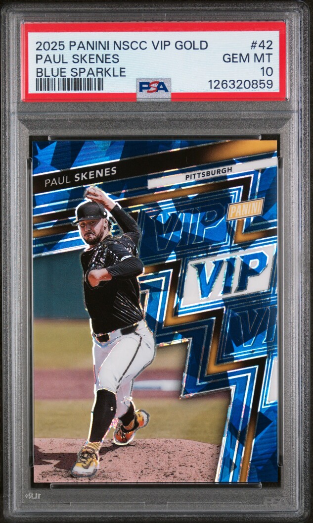 2025 Panini National Sports Collectors Convention Vip Gold Paul Skenes Blue Sparkle 65/75