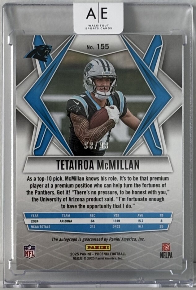 2025 Panini Phoenix šŸˆšŸ”„Tetairoa McMillan RC Auto Mojo #98/99 SP! Panthers ROY