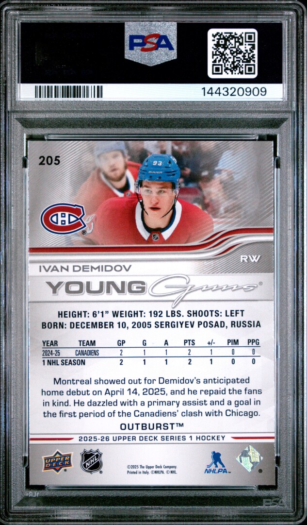 2025 Upper Deck Ivan Demidov Outburst Young Guns PSA 9