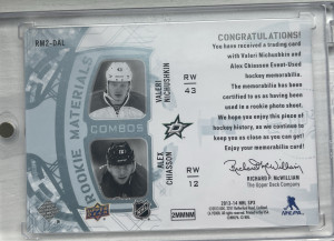2013 SPx #RM2-DAL Alex Chiasson / Valeri Nichushkin Rookie Materials Combos