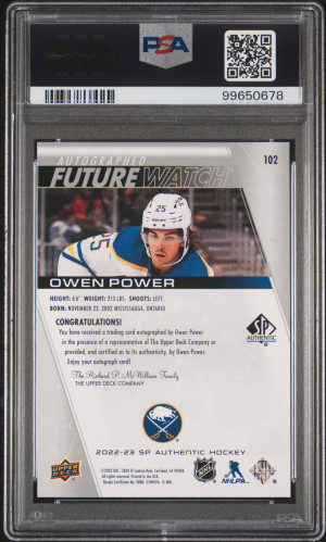 2022-2023 Upper Deck SP Authentic Owen Power Future Watch Auto PSA 9 MINT Sabres