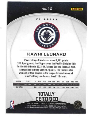 2024-25 Totally Certified #12 Kawhi Leonard - Los Angeles Clippers