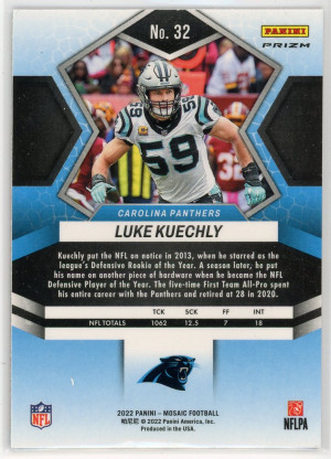 2022 Panini Mosaic #32 Luke Kuechly Red Sparkle