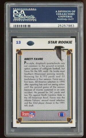 1991 Upper Deck Brett Favre ROOKIE BLUE INK AUTOGRAPH PSA AUTO 10