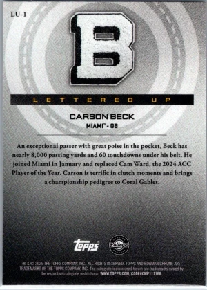 2025 Bowman University Chrome #LU-1 Carson Beck Lettered Up