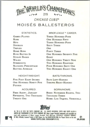 2025 Topps Allen & Ginter #219 Moisés Ballesteros Mint