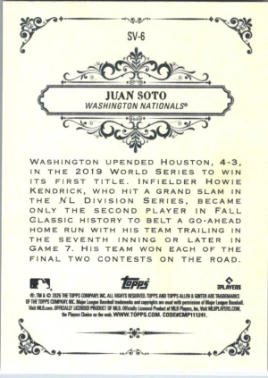 2025 Topps Allen & Ginter #SV-6 Juan Soto Sweet Victory