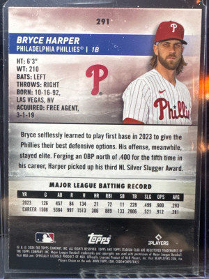 Bryce Harper 2024 Stadium Club Red Foil Parallel Card #291 Philadelphia Phillies Color Match