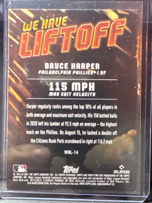 Bryce Harper 2021 Topps Fire We Have Liftoff Gold Minted #WHL-14 Phillies