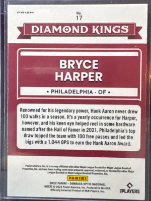 2022 Donruss Diamond Kings Bryce Harper Purple Holo Philadelphia Phillies