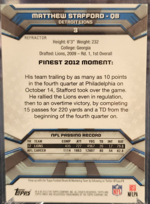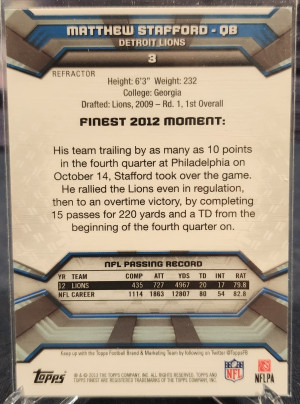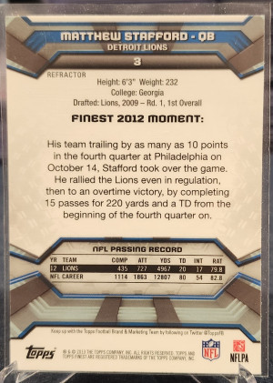 2013 Topps Chrome Matthew Stafford X-Fractor
