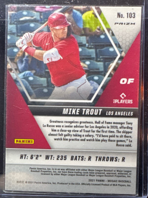 2021 Panini Mosaic Mike Trout Reactive Red Prizm SP #103 Los Angeles Angels