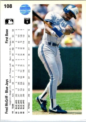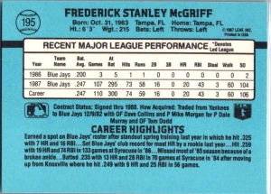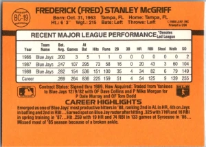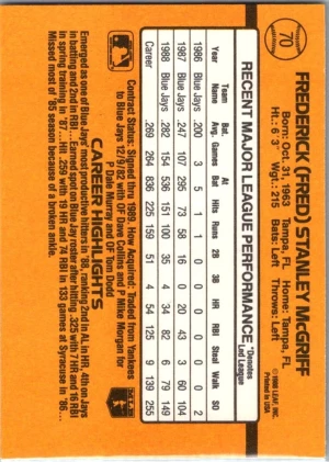 Fred McGriff Blue Jays 1987 Donruss The Rookies (194)