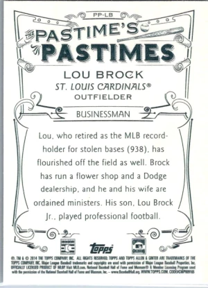 2014 Topps Allen & Ginter #PP-LB Lou Brock Pastime's Pastimes