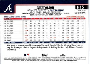 2025 Topps Holiday #H15 Matt Olson Silver Glitter Holiday