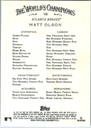 2025 Topps Allen & Ginter #168 Matt Olson