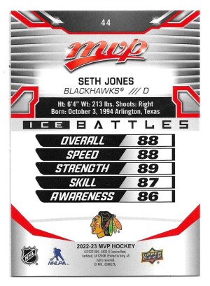 2022-23 Upper Deck MVP Ice Battles #44 Seth Jones - Chicago Blackhawks