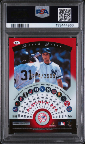 1997 PINNACLE TOTALLY CERTIFIED PLATINUM RED #51 DEREK JETER (2954/3999) PSA 9 - POP 49
