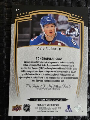 2024-25 Stature Cale Makar #15 Premium Auto Orange /15
