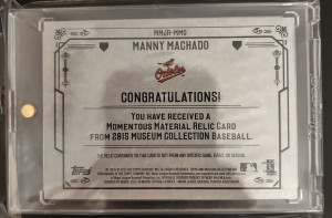 Manny Machado, 2015 Topps Museum Collection Jumbo Relic #1/10
