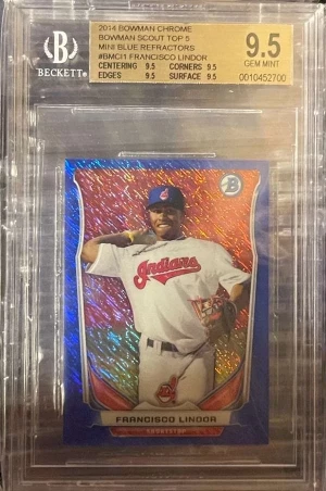 2014 Bowman - Chrome Scout Top 5 Mini Blue Refrac. Francisco Lindor BGS 9.5