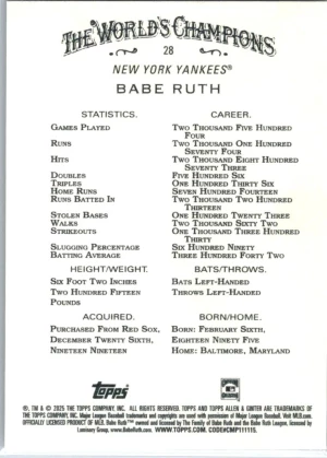 2025 Topps Allen & Ginter #28 Babe Ruth Mint