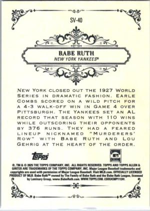 2025 Topps Allen & Ginter #SV-40 Babe Ruth Sweet Victory