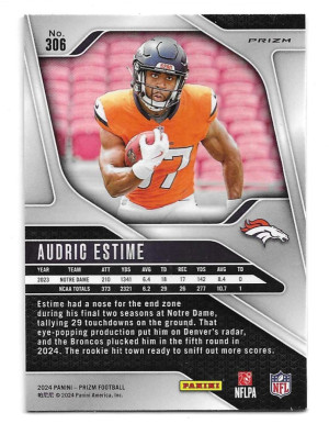 2024 Panini Prizm Prizms Green Ice #306 Audric Estime (RC) - Denver Broncos