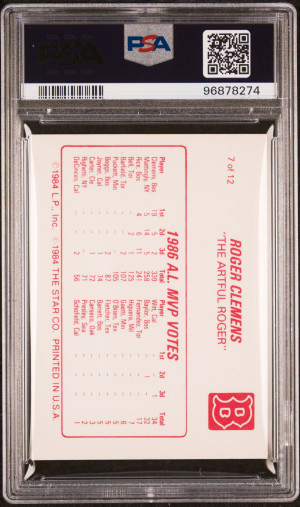 1987 Star Clemens Roger Clemens 1986 A.l. Mvp Votes (169)