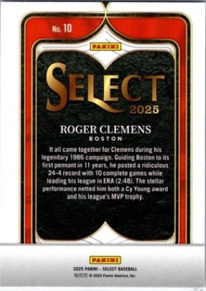 2025 Panini Select #10 Roger Clemens Select Numbers