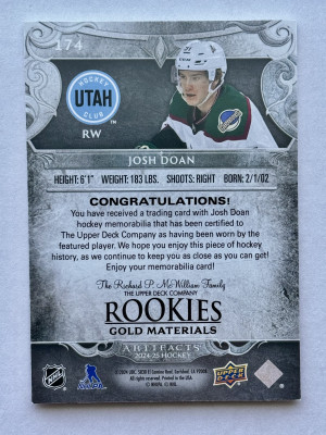 2024-25 Artifacts Gold Materials Josh Doan /499