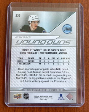 2024-25 UPPER DECK CLEAR CUT Josh Doan VINTAGE Rookie VA-DO