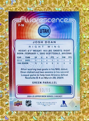 2024-25 Upper Deck Series 2 #F-16 Josh Doan RC Fluorescence Green Parallel SSP /15
