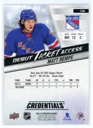 2024-25 Upper Deck Credentials #128 Matt Rempe Rookie Card /999