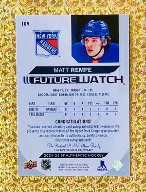 2024-25 UD SP Authentic #109 Matt Rempe Future Watch Auto /999