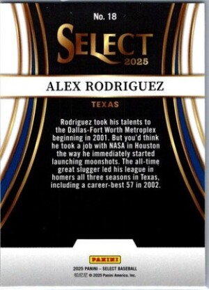 2025 Panini Select #18 Alex Rodriguez Turbo Charged