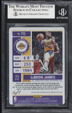 2019-20 PANINI CONTENDERSPRINTING PLATES CYAN#70 LEBRON JAMESCENTERINGEDGES89.5CORNERS