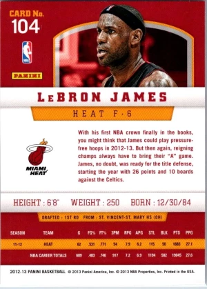 2012 Panini Threads Team Threads Lebron James Team Threads