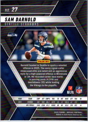 2025 Panini Select #13 Sam Darnold Pink Prizm Shock