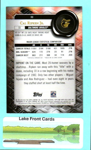 Cal Ripken Jr. [Class 2] #52 2022 Topps Gold Label