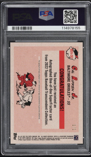 2022 Topps Transcendent Collection 1958 Topps Superfractor Autographs 1/1 Cal Ripken Jr. 1958 Topps Super Au 1/1