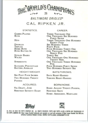 2025 Topps Allen & Ginter #26 Cal Ripken Jr.