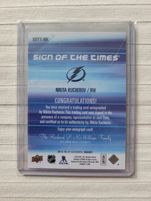 Nikita Kucherov 2015-2016 SP Authentic Sign Of The Times Autograph