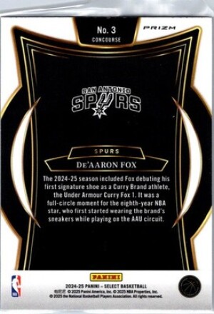 2024-25 Panini Select #3 De'Aaron Fox Silver Prizm