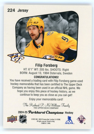 2024-25 Parkhurst Champions Filip Forsberg Jersey #224