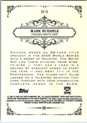 2025 Topps Allen & Ginter #SV-15 Mark Buehrle Sweet Victory
