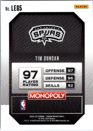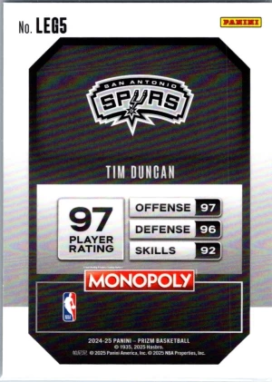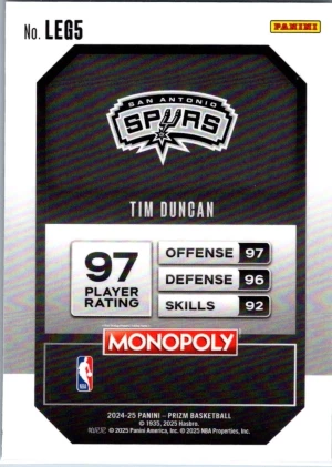 2024-25 Panini Prizm Monopoly #LEG5 Tim Duncan Legends