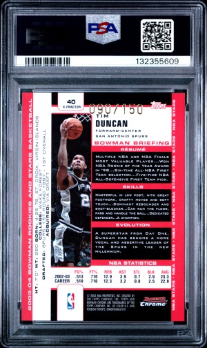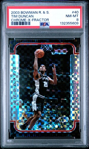 2003 Bowman Rookies & Stars Tim Duncan Chrome-X-Fractor PSA 8