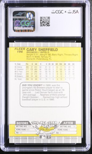 1989 Fleer #196 Gary Sheffield CGC 9 Autograph Authentic