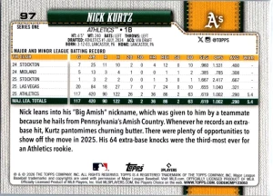 2025 Topps Update Series - Nick Kurtz Stars Of MLB #SMLB-61 (RC) - Oakland A's